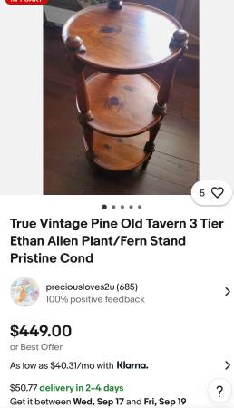 I have a three tier Ethan Allen plant stand. I think it’s from the 60s. It is an excellent condition. 100.00 or best offer Cash only Text if interested or email Thanks The last picture is a example...