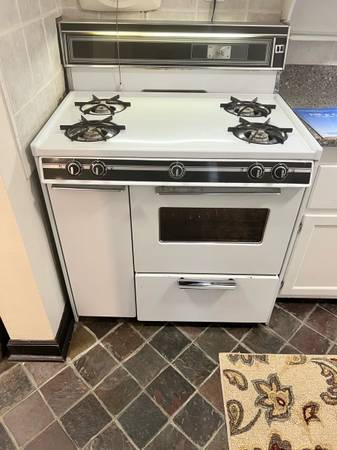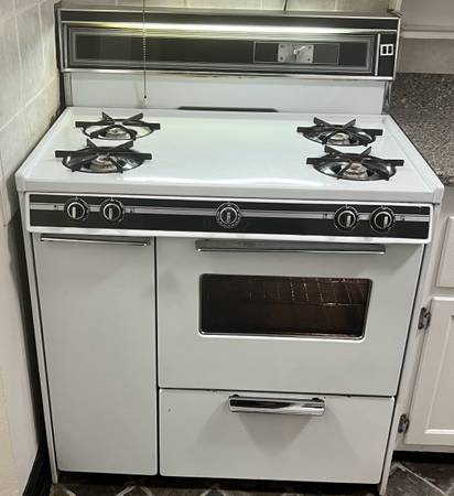 Hardwick 36 inch vintage range/stove. $350 or best offer. Vintage Camphor wood wardrobe $400- best offer. Watertown slide mahogany table-$125 or best offer