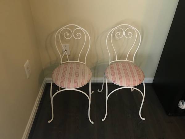 2 White and Pink Metal Kids’ Chairs - baby & kid stuff - by owner -...