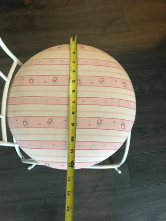 Two sturdy children steel chairs. For other children items, please see my other listings. Kids chairs, kids seats, girls chairs, children chairs. White and pink chair, metal chair, metal seat, steel...
