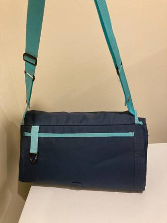 LightSpeed Outdoor Blanket 4.9' X 5.5' Navy Blue/Teal Chevron Print