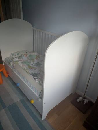 The GONATT Convertible Crib (old version, three separate drawers) with Mattress is your crib solution!