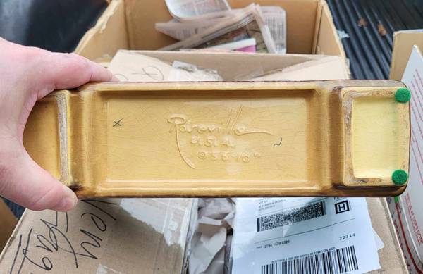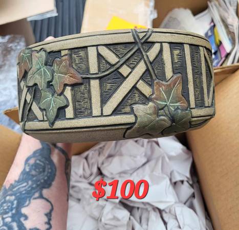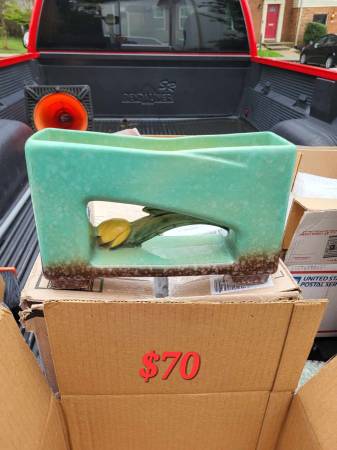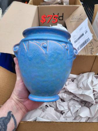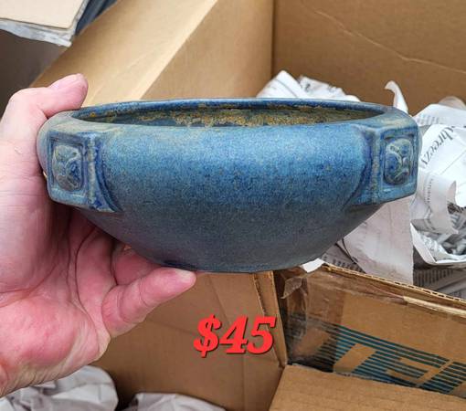 Up for consideration are various pieces af art pottery from different makers. Weller, Roseville, Bretby and some unidentified studio pieces. The prices vary so I added them in red text on the pottery. I am also interested in trading for other arts and crafts period pottery, furniture, lamps and bronze. Message me if you are interested in any of the pottery. I prefer local pick-up in Rockville, Maryland, but shipping can be arranged.