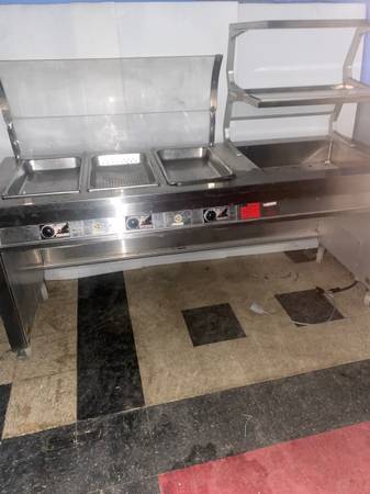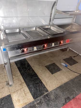 This is an electric floor model steam table . It was manufactured by Precision metal products co . The model # is ST-2005-HC . 120/208V ,