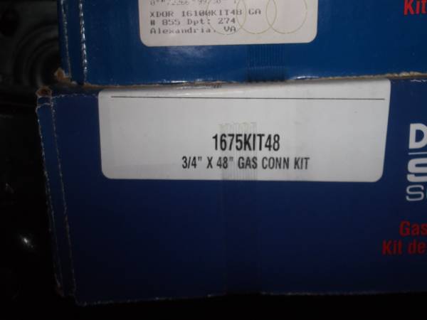 New Dormont Gas hose connector kits with quick disconnects. Have 1" x 48" and 3/4" x 48". Used for connecting gas lines for commercial cooking equipment (that are on casters or without). ***Includes quick disconnect, black pipe elbows, restraint cable, and full port ball gas valve***. $150 ea for the 1" kits and $125.00 ea for the 3/4' kits. All new in the box.