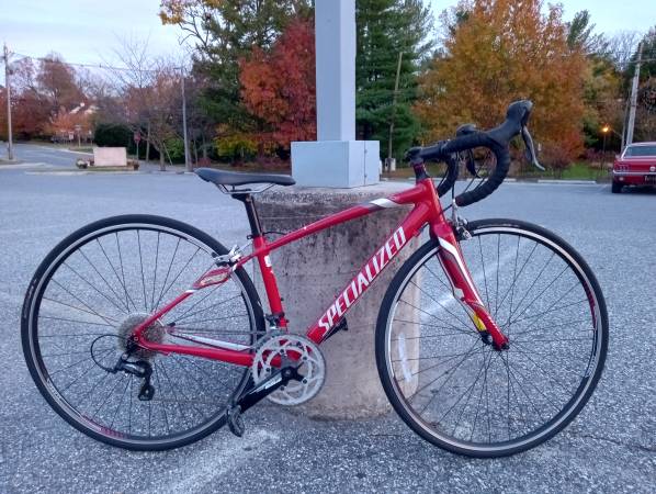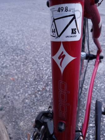 This beautiful in red, Specialized Dolce Sport Road Bike is in top notch condition. The bike is equipped with Shimano Sora drivetrain, Axis Classic wheelset, and Shimano PD-EH500 Dual Platform SPD Pedals. This Dolce Sport road bike has been fully tuned up and ready to ride. I am asking for 390 or best offer for this stunning bike.
