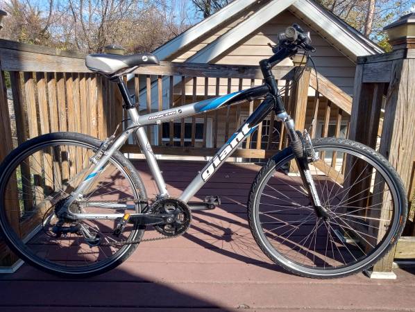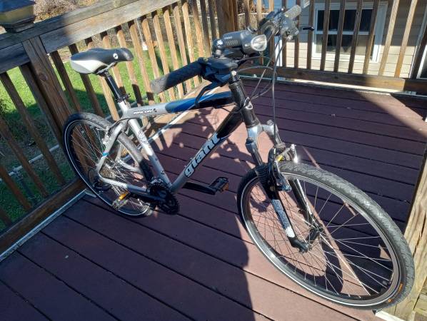 For sale is a well equipped, Giant Rincon Hardtail Mountain Bike, in excellent condition. This bike can handle both on road and off road. This bike is ready for your next adventure with front suspension and new Continental Country Plus 26x1.75 tires, Trek front light, bike bell, and smart phone holder. I am asking for 160 or best offer.