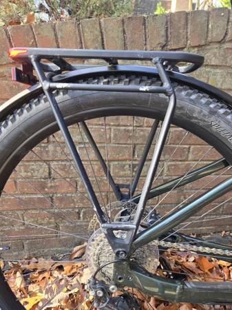 This Specialized Turbo Tero 3.0 e-bike is equipped with rack, fenders and lights, making it a great all-around bike for commuting, hauling cargo, or trail riding. The Turbo system has 3 pedal-assist speeds to get you around town or on the trail. 29" tires easily handle rough roads or trails. The Turbo system makes getting up any hill or to any destination no sweat. This bike has been gently ridden, stored indoors and well maintained.