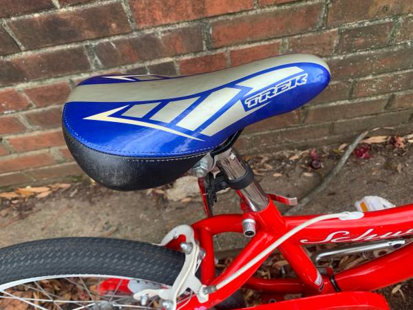 It is not in perfect shape but should work fine for another kid or two … it has a blue saddle from a kids Trek… in good shape. I have a neutral black kids saddle coming in but that would not be ready till early December.