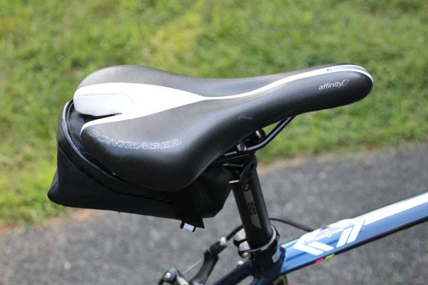 Specs include Bontrager wheels, tires, saddle and handlebars with dual bottle cages and saddlebag included. Gearing is Shimano Sora 9 speed with dual front chainrings.