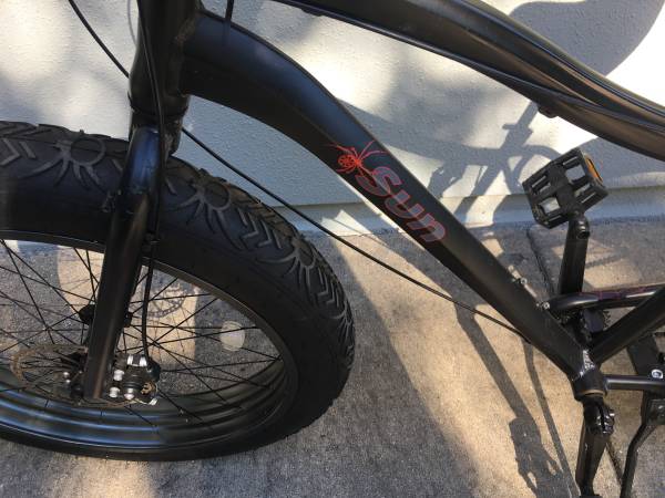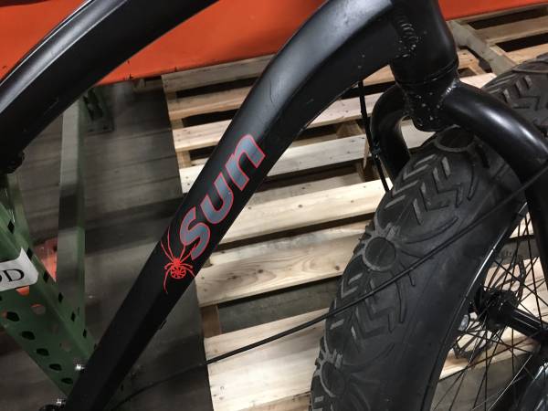 FAT TIRE BRAKE 3 speed 26” x 4” tires made especially for Sun Production Alloy frame Smooth welds Heavy chain