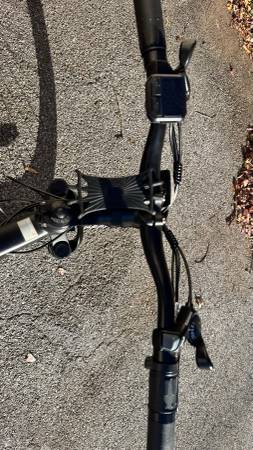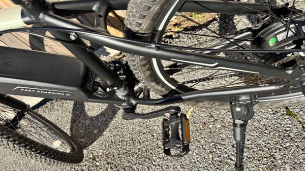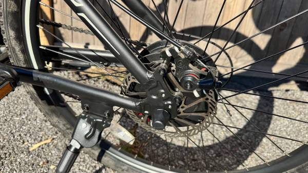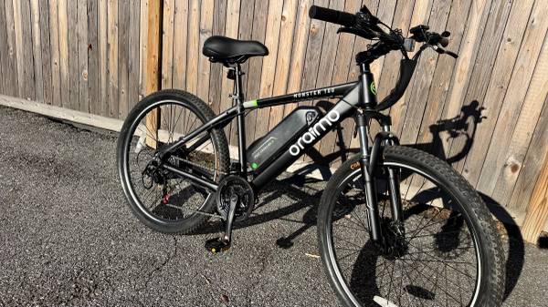 One of the most popular e-bikes on Amazon, but they’re no longer available there! I purchased this to see what the fuss was all about and it doesn’t disappoint! Well equipped with a Shimano 21-speed gear set, along with stout mechanical disk brakes that have power shut off to the rear hub when you tug on either brake - not all e-bikes have this and can be tricky if you’re stopped at a light and you mistakenly tap the pedals. Adjustable handle bar height and seat post make this good for riders 5’2” to 5’10”. If you remember rebooks pump shoes, the firmness of the seat can be adjusted with just the push of a button under the seat. It does make difference! Grippy 26 inch tires and a kickstand round out this very capable ebike. Range is anywhere from from 15 to 45 miles, depending on how much you want to pedal. It has fender and rear rack mounts that allows it to be a commuter or touring bike. It has less than 50 miles, mostly put on to test range and set the brakes. Come give it a spin! Great for teens to seniors! Comes with lock and phone mount and charger (of course), and 1 key for battery removal.