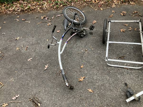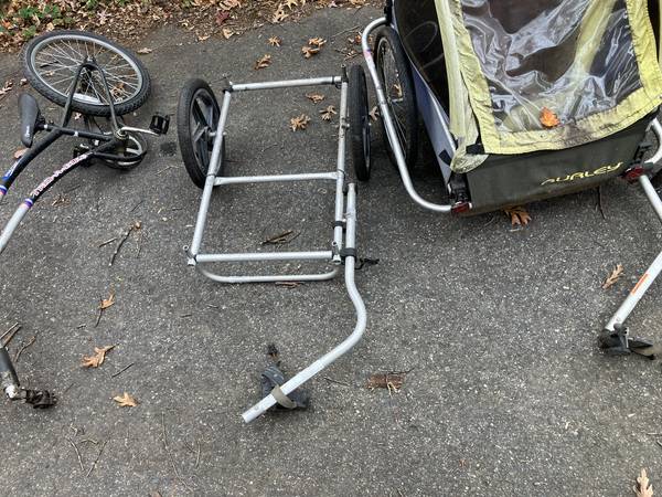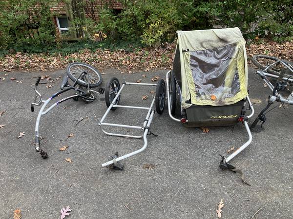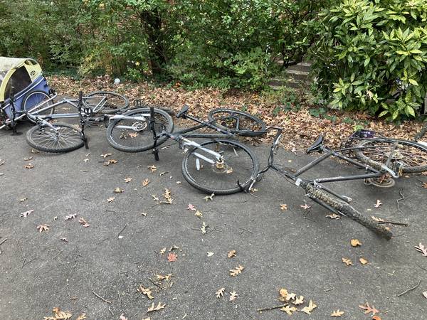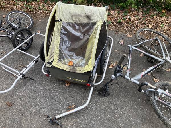 Cleaning out garage. Four bikes, two bike trailers, ridealong---sold as a lot. you must take everything. $100 for everything, and everything needs work. I assume most items can be fixed up. Whatever can't be fixed can be cannibalized for other projects.