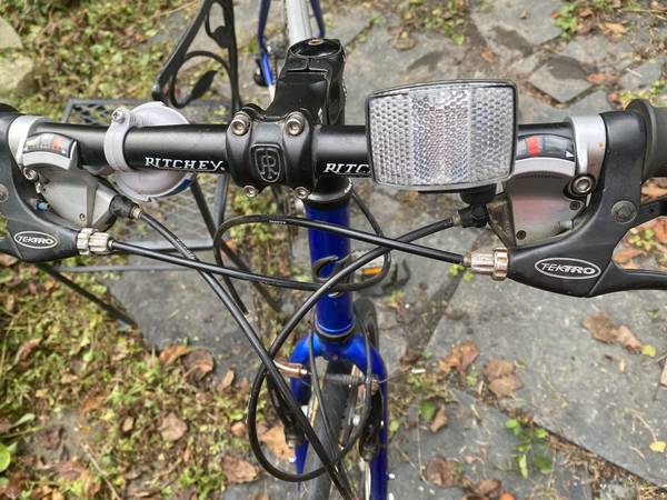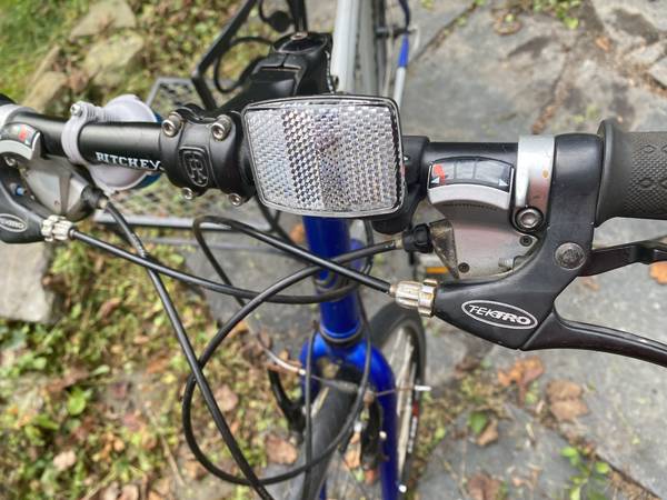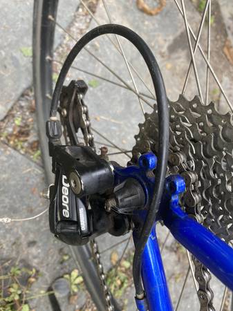 Jamis Coda Sport. Alex rims. 520 Chrome alloy. 21.5 inch frame. Overall good condition with the exception of the well-used tires and the front derailleur. Rear cassette is working well, but the front derailleur does not work well, so I ride set on the smallest of the 3 cranksets. Seat cover is hiding a rip.