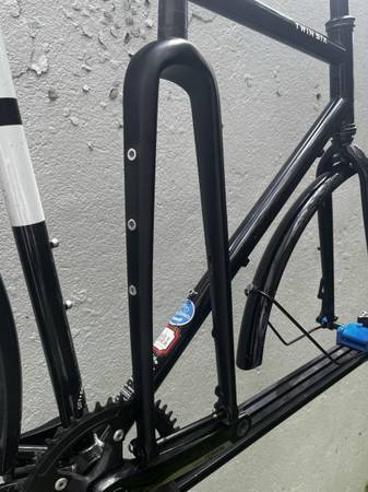 Twin six standard frame with fenders, crankset, extra dropouts, and two forks