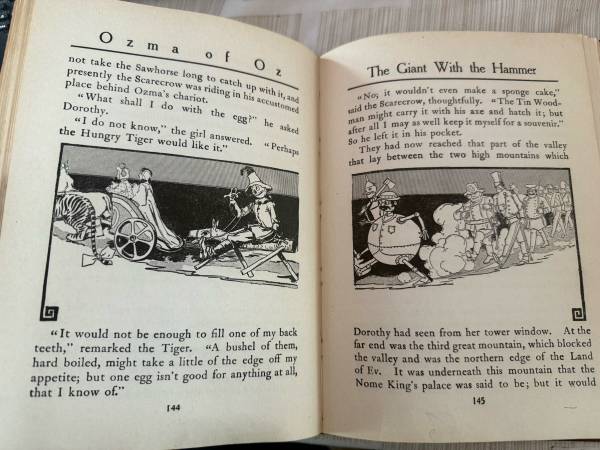 Ozma of Oz written by Frank L. Baum and illustrated by John R. Neill. This is one of several continuation stories based on the famous Wizard of Oz stories. 1907 is publication date.
