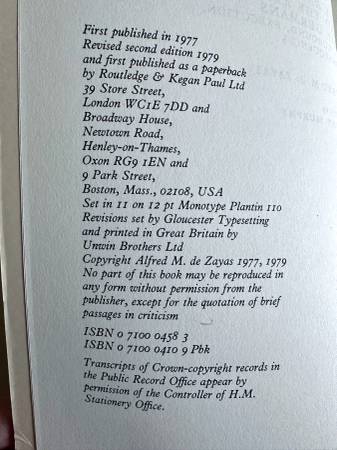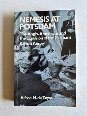 Nemesis at Potsdam by Alfred M. deZayas. Revised edition, 1979. Small crease on the front and back covers, otherwise in excellent condition. $12, cash only.