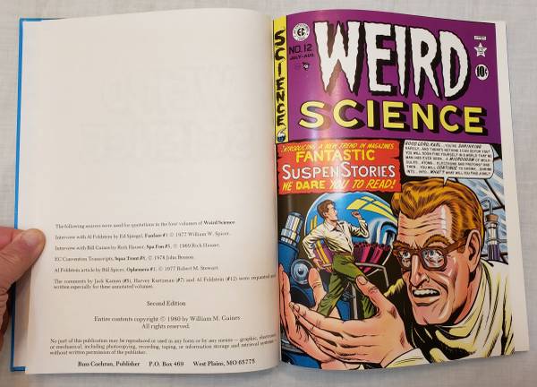 Hardcover reprint of classic EC Comic title WEIRD SCIENCE, six issues from May/June 1950 through March-April 1951. This is the Second Edition, published by Russ Cochran in 1980. The original six covers are reproduced in full color, the stories in black-and-white. Artists featured in these issues were Wally Wood, Harvey Kurtzman, Al Feldstein, Harry Harrison, Jack Kamen, and Graham Ingels. Excellent condition. $49, cash only.