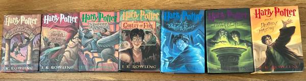 Harry Potter Hardcover 1-7 Books. The first book on the upper edge does have a small tear. These are great books for anybody looking to bring back good memories of their childhood or just re-read the entire series. These are used books, but they do not have writing on them. Books 1-4 come in a box set, and the other three are loose copies. $120.00 or make me an offer for the entire set.