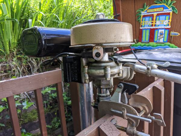 Seagull feather lite outboard. I bought this engine in new condition over fifteen years ago but never used it on a boat. It's been sitting in storage and only has a few running hours on it. Nice...