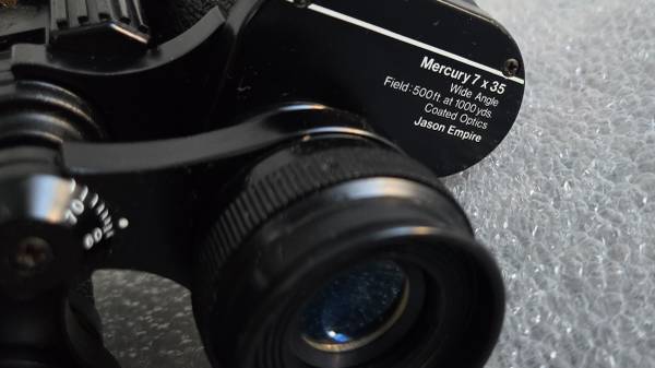 Jason Empire model 1116F Binoculars Mercury 7x35 Wide Angle 500ft @ 1000 yds Dimensions are approximate 5"x6.50"x2.50" (compacted) & 5.25"x7"x2.75" (fully extended) Excellent Condition CASH ONLY