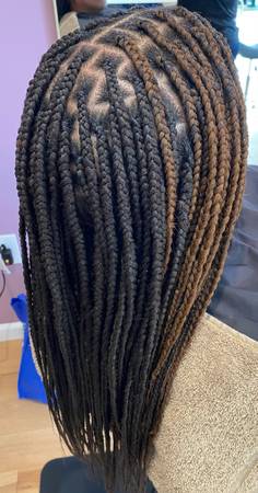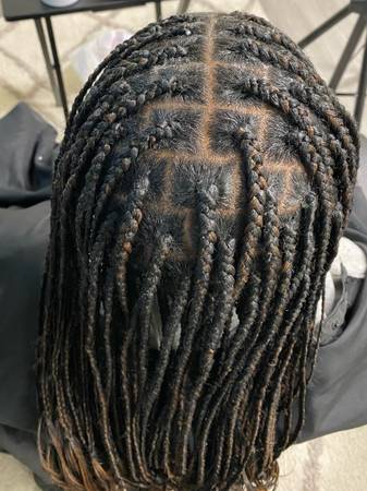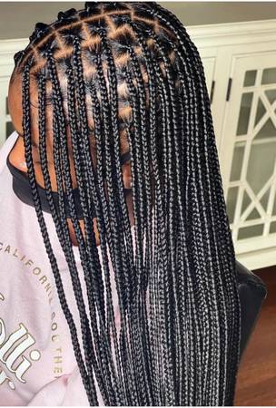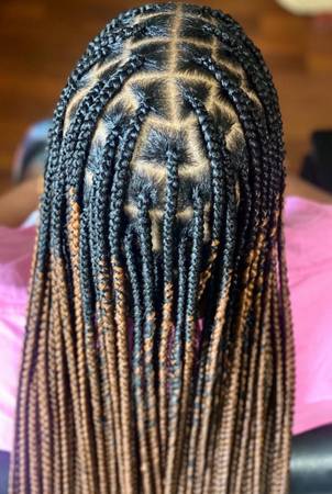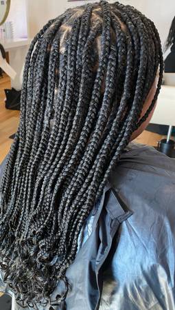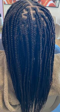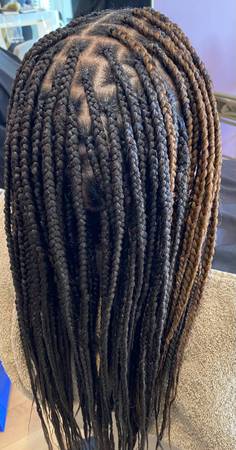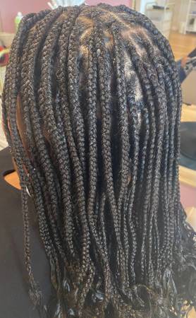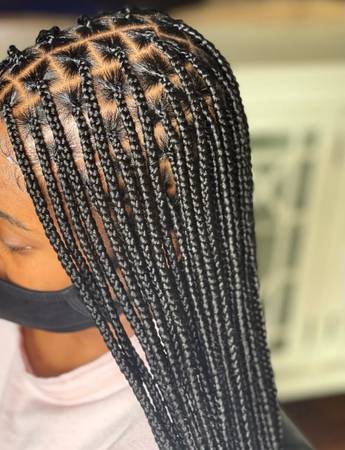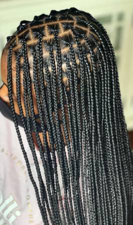 This is for our medium or knotless braids. Up to 22 inches. 22 inches of hair is used in this style. It could be mid back for some or Waist length depending on you height. $130 Small Knotless braids...