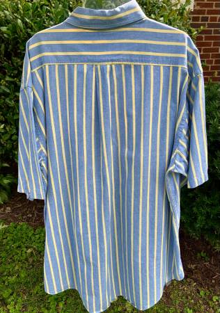 Marina Blue /Yellow Stripe XL Cotton Chambray Sports Mens Shirt from Lord & Taylor - Barley worn, from a SMOKE FREE/ PET FREE Environment. *PRICE FIRM - Porch Pick Up Cash p/u Bethesda, Md off...