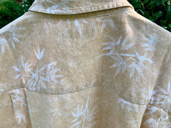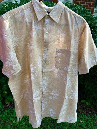 Mens Tan Linen Sports SS Shirt w/ Light Palm Pattern (Macy's) - XL (Full Cut) - Like-New / Gently Worn Button up w/ chest pocket *PRICE FIRM - Porch Pick Up Cash p/u Bethesda, Md off Old Georgetown...