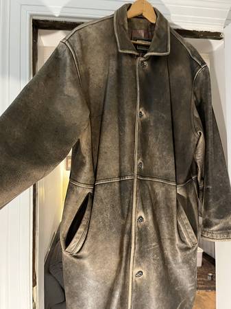 Rbt Comstock Mens Knee Length Dark Brown Leather Coat Size 44