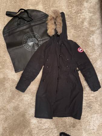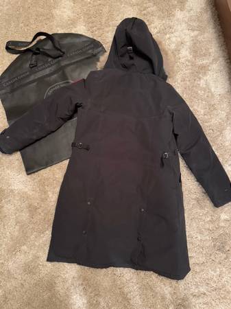 Womens XS Canada Goose Down Parka for sale. Black with fur collar. Garment Bag included. Used but still has plenty of life in it. Just too small now for my daughter. Small hole on sleeve, easily repairable. Was asking $400. If you buy this week cost is $375. Get ready for winter before it gets cold. Must pick up. Cash or Venmo only.