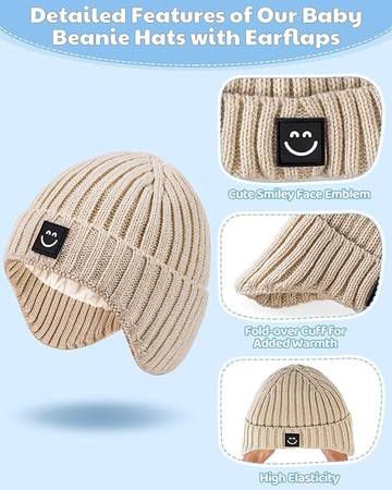 Alepo 3 Pack Baby Beanie Hats with Earflaps, Baby Winter Hat for Newborn Infant Toddler Kids Children with Cute Smiley Face-1 One Size One Size 6 - 36M Bought from Amazon for $19.99+ tax, ask for...