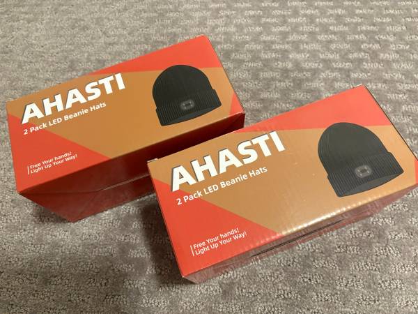 Beanie with Light for Men 2 Pack, Hat with Light Built in Rechargeable Winter Warm Knitted Headlamp Caps, Gift for Men Dads Husband Led Beanie Hats with Light(Black&Light Gray)