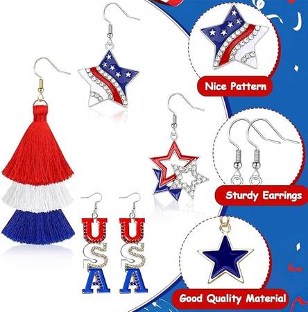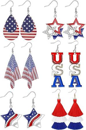 【6 PCS】 American Flag Earrings USA Drop Earrings 4th of July Accessories for Women Fourth 4th of July Outfits for Women Patriotic earring Party Favors Red White Blue Decorations