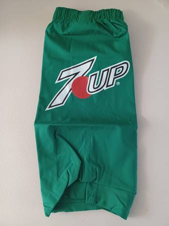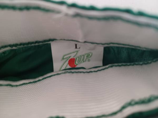 This vintage 90's 7Up soda pop drink logo loungewear is made of a comfortable blend of polyester and cotton, and features the classic green 7Up graphic / logo.