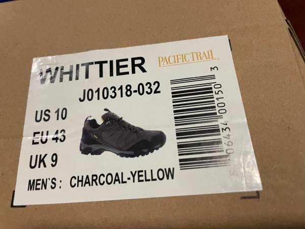 NEW in box Men's hiking shoes size US 10 (EU 43, UK 9) charcoal / yellow Pacific Trail Whittier