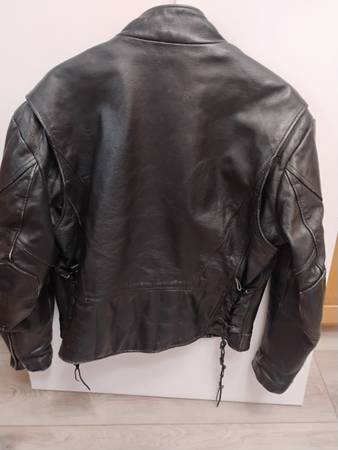 This women's large lightly used jacket is perfect for motorcycle enthusiasts or fashion-conscious individuals seeking a timeless leather jacket. It does not include the inner zip-in liner.