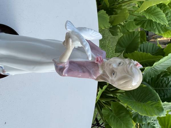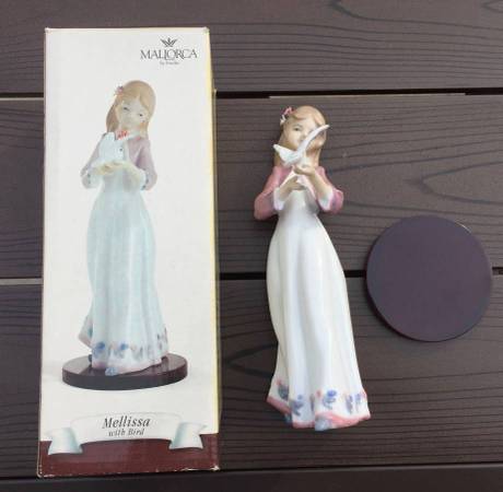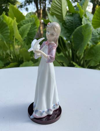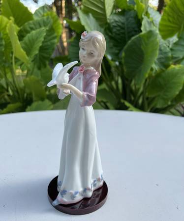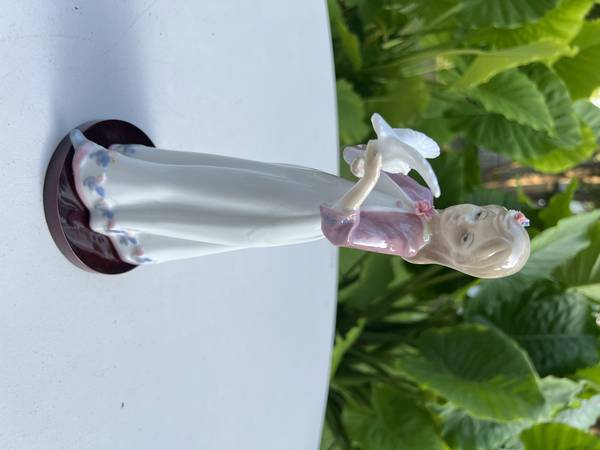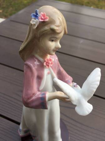 Little girl holding a bird porcelain statue with wood base with original box for $25. See my other postings with the user link. ~ Kathy