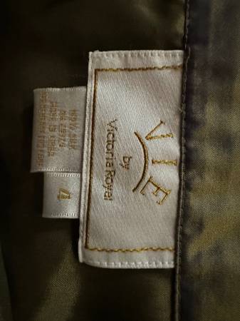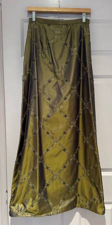 BEAUTIFUL AND WELL MADE..... WOMENS LONG SKIRT VIE BY VICTORIA ROYAL SIZE 4 NEW WITHOUT TAGS 100% SILK LINED WITH BEADING AND EMBROIDERY OLIVE COLOR 43” LONG