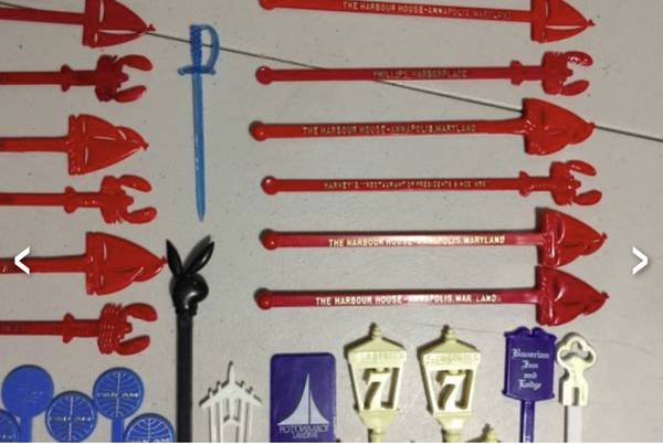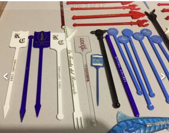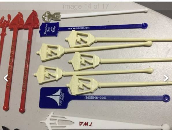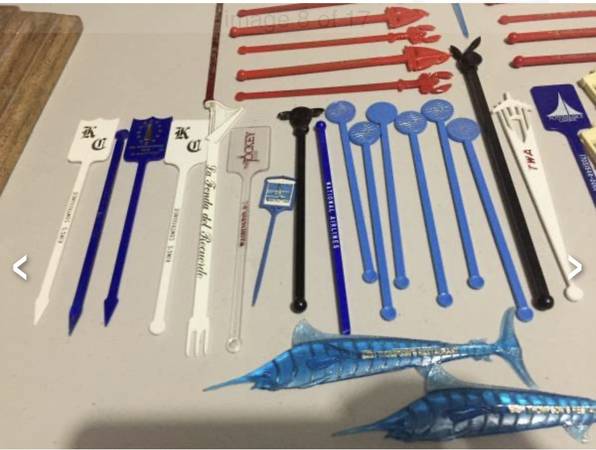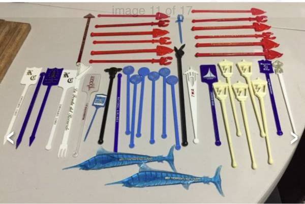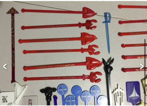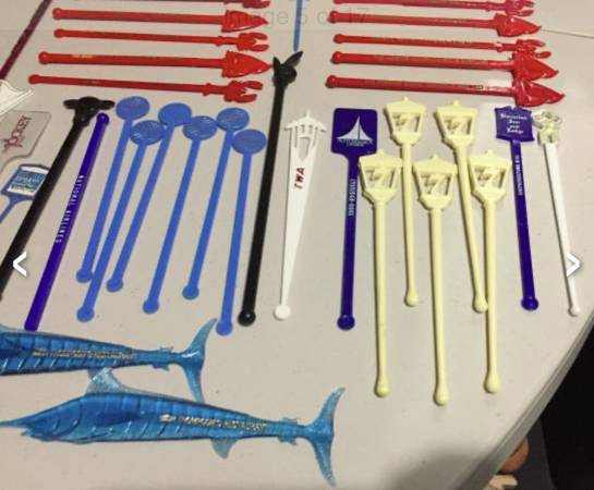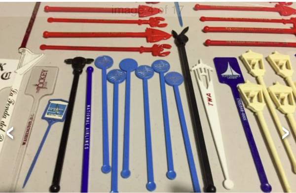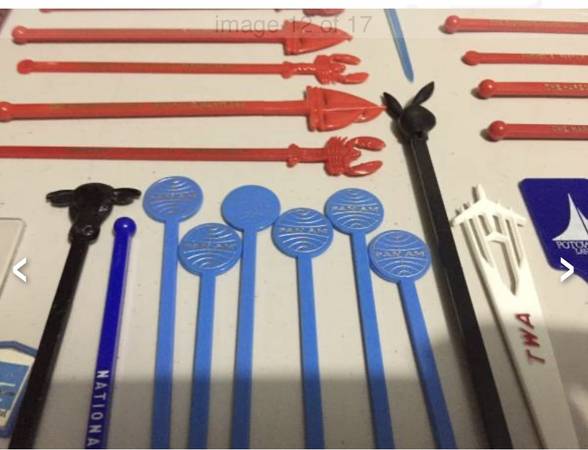 Vintage swizzle stick/drink stirrers from old airlines (Pan Am, TWA, National), Playboy, etc. $20 takes all. View my other postings with the user link. ~ Kathy