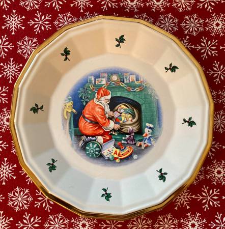 The Homer Laughlin China Company was founded by two brothers in 1871, flourished during the 20th century, and is now known as the Fiesta Tableware Company. This unique gold-trimmed Santa design was...
