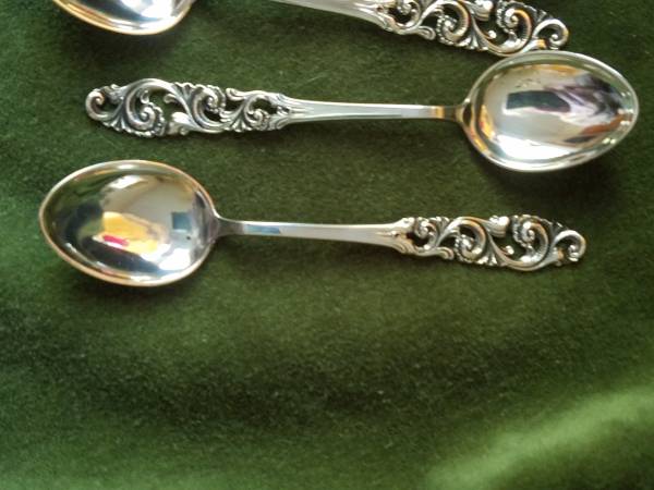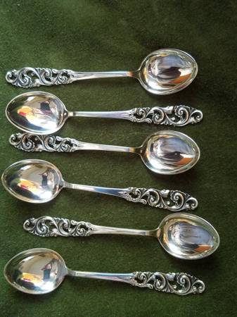 Vintage set of 6 Demitasse Spoons, Norway, Brodrene Mylius designer, Tele pattern, 830 silver, Bird touch mark, Pierced, lovely pattern.