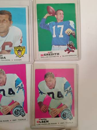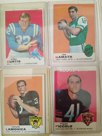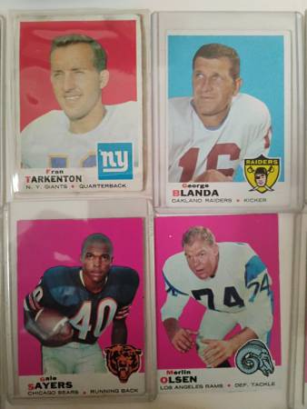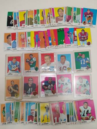 Selling over 130 1969 Topps football cards. 128 of the cards are of the more common players, and some of the more famous players are listed below.