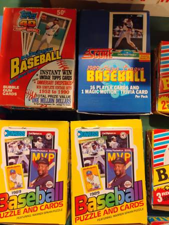 Selling the below Topps, Donruss, and Score baseball card wax pack boxes and various other sets at the below prices.