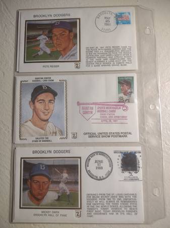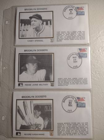 Brooklyn Dodgers - Lot of 6 Commemorative Envelopes Postmarked. Includes Hall of Famers Casey Stengel and Pee Wee Reese. Postmarked 1988 through 1994. Mint Condition. Discounted.