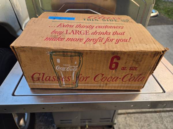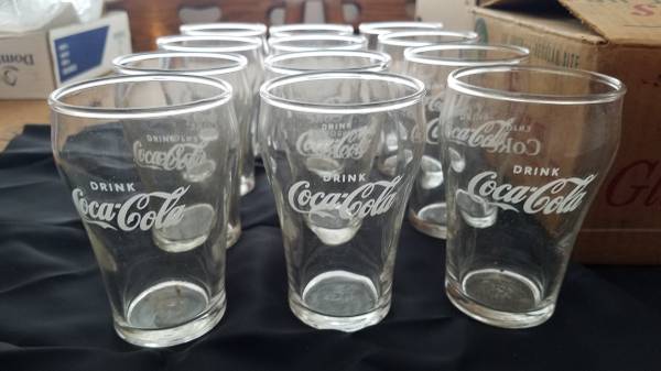 vintage 6 oz coke glasses with original box LOOKS LIKE A STAR ON BOTTOM OF GLASS INTERESTED OR QUESTIONS SEND NAME PHONE # AND BEST TIME TO REACH YOU