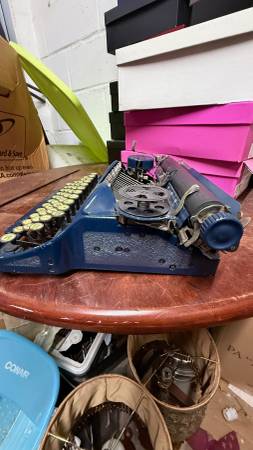 A great little machine in an uncommon and beautifully rich Channel Blue color-way. Needs some work, some keys stick or do not respond perfectly, has some wear to blue color, see photos. Has soft case, but zipper is not working. Includes the accessories shown, and the manual. I have a video I can send.