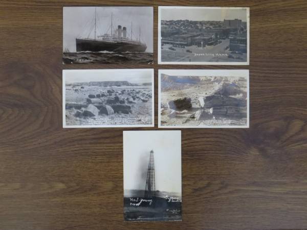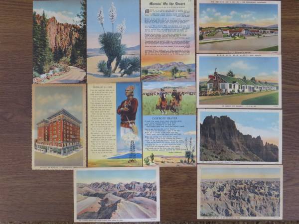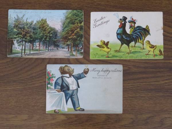 * These postcards were glued in a scrapbook and have residual brown glue stains (not sticky) on the back.