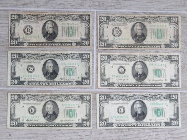 All bills circulated and in varying condition (except for the $2 uncirculated notes).