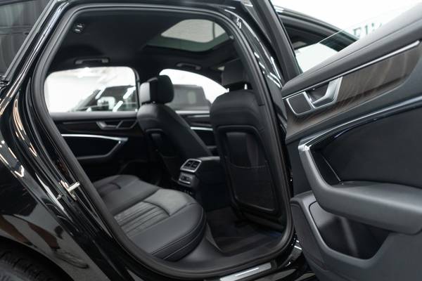 2023 Audi A6 Premium Quattro S Line..28k miles..One Owner-Clean Carfax *MSRP $64,290* Black Optic Sport Pkg, Navigation, Surround View 3D Camera, Blind spot assist, Heated front seats, Rear climate control, Parking sensors, Apple CarPlay, Moonroof, Bluetooth, Paddle shifters, 20" wheels, 3-Zone climate control, Audi Beam rings, and much more. This Audi features a Mythos Black Metallic exterior over Black leather interior and wood trim. Balance of Audi full factory warranty until October 2026 or 50k mi. SHOWROOM READY!