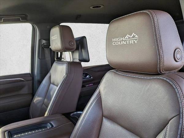 * Rear Seat Media System * Leather Seats * Navigation System * 3rd Row Seat * Lane Keeping Assist * Keyless Start * Heads-Up Display * Cooled Front Seat(S) * Audio System; Chevrolet Infotainment 3 Premium System With Connected Navigation; 10.2" Diagonal Hd Color Touchscreen * Emissions; Connecticut; Delaware; Maine; Maryland; Massachusetts; New Jersey; New York; Oregon; Pennsylvania; Rhode Island; Vermont And Washington State Requirements * Engine; 6.2L Ecotec3 V8 * Gvwr; 7500 Lbs. (3402 Kg) * High Country Preferred Equipment Group * Jet Black/Mocha; Perforated Leather Seating Surfaces 1St And 2Nd Row * License Plate Front Mounting Package * Midnight Blue Metallic * Rear Axle; 3.23 Ratio * Seats; Front Bucket * Transmission; 10-Speed Automatic * Wheels; 22" X 9" (55.9 Cm X 22.9 Cm) Sterling Silver Premium Painted * Not Equipped With Automatic Stop/Start; See Dealer For Details * Not Equipped With Steering Column Lock * Not Equipped With Wireless ChargingThis 2021 Chevrolet Tahoe High Country is offered to you for sale by BMW of Rockville. This Chevrolet includes: ENGINE, 6.2L ECOTEC3 V8 8 Cylinder Engine Gasoline Fuel *Note - For third party subscriptions or services, please contact the dealer for more information.* Off-road or on the street, this Chevrolet Tahoe High Country handles with ease. You appreciate the finer things in life, the vehicle you drive should not be the exception. Style, performance, sophistication is in a class of its own with this stunning Chevrolet Tahoe High Country. Do you encounter heavy snow, rain or mud when driving? No problem. With this vehicle, you've got the power of 4WD to help you overcome the toughest terrain.